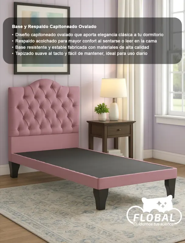 Dale a tu dormitorio un toque de distinción con la Base y Respaldo Capitoneado Ovalado, una pieza que combina estilo clásico con una fabricación de alta calidad. Ideal para quienes buscan un diseño refinado sin renunciar al confort.